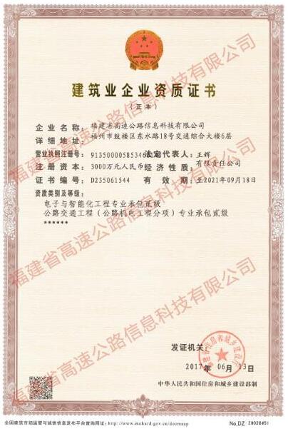 近年來,公司根據(jù)市場定位和經(jīng)營方向,把企業(yè)資質建設作為一項長期的戰(zhàn)略任務來抓,有目標、有組織、有步驟地加緊推進資質申報工作。經(jīng)過不懈努力,公司先后獲得信息系統(tǒng)集成四級、高新技術企業(yè)認定、科技型企業(yè)備案、公路機電分項二級、安全生產許可證在內的6項資質,自主投標能力得以進一步加強。