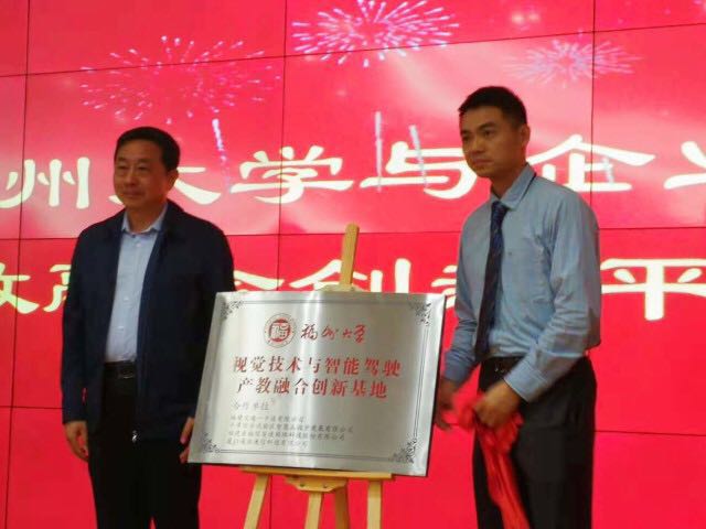 10月14日,由我司與福州大學(xué)共建的“視覺(jué)技術(shù)與智能駕駛產(chǎn)教融合創(chuàng)新基地”揭牌儀式在福州大學(xué)舉行。我司王輝董事長(zhǎng)與福州大學(xué)物理與信息工程學(xué)院學(xué)科帶頭人陳志峰教授共同揭牌。