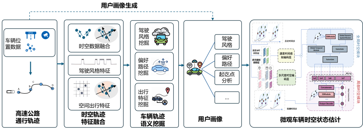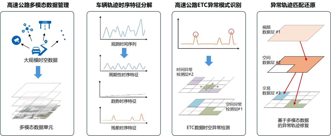 項目創(chuàng)新研發(fā)“基于掩碼自監(jiān)督的高速公路多模態(tài)大數(shù)據(jù)融合治理技術”,通過高效融合ETC門架、收費站、視頻等多源異構數(shù)據(jù),構建了路基-車基協(xié)同感知的“一張圖”。該技術實現(xiàn)了百億級軌跡數(shù)據(jù)的秒級處理,異常數(shù)據(jù)修復率和噪聲去除率均超過98%,為全網(wǎng)收費及精準分析打下了堅實數(shù)據(jù)基礎。
