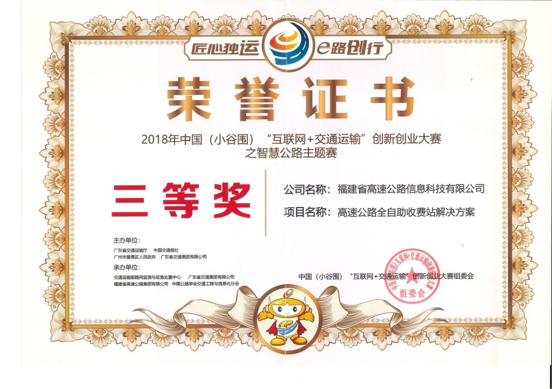 自助繳費(fèi)終端是高速公路收費(fèi)無(wú)現(xiàn)金、無(wú)人化的關(guān)鍵核心設(shè)備,系統(tǒng)主要實(shí)現(xiàn)全車型自助收費(fèi)、車道票據(jù)自動(dòng)管理、車道無(wú)人值守收費(fèi)、遠(yuǎn)程輔助過(guò)車、混合收費(fèi)和財(cái)務(wù)票證管理等功能,將收費(fèi)員從繁重的傳統(tǒng)收費(fèi)工作中解脫出來(lái),有效提升高速公路收費(fèi)站的運(yùn)營(yíng)工作效率,降低管理成本?;谧灾U費(fèi)終端設(shè)備的“高速公路全自助收費(fèi)站解決方案”榮獲2018年中國(guó)(小谷圍)“互聯(lián)網(wǎng)+交通運(yùn)輸”創(chuàng)新創(chuàng)業(yè)大賽之智慧公路主題賽三等獎(jiǎng)。